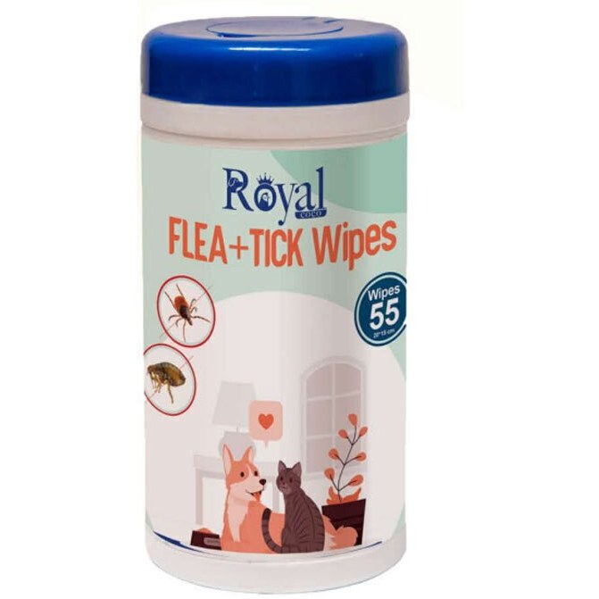 دستمال مرطوب مخصوص سگ و گربه ضد کک و کنه رویال کوکو | بسته ۵۵ عددی