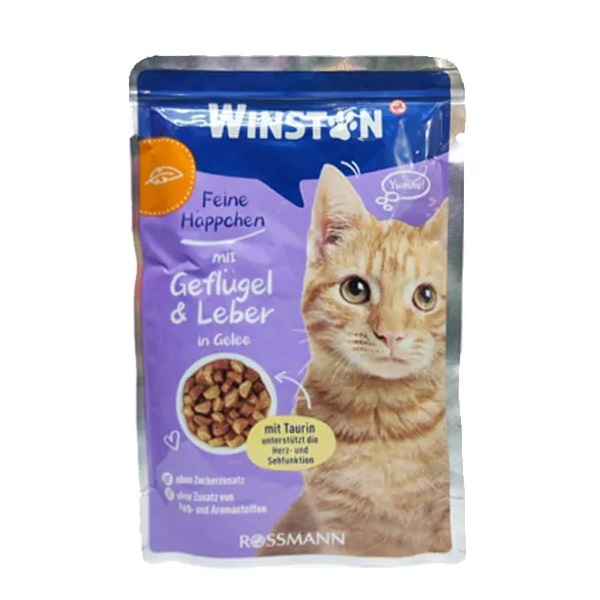 پوچ گربه با طعم مرغ و جگر از برند وینستون،حاوی رطوبت و انواع ویتامین ،موادمعدنی،آمینواسیدهای ضروری و مورد نیاز بدن گربه های بالغ در تمامی نژاد هاست.پوچ در اصطلاح به عنوان سوپ یا غذای تر حیوانات خانگی در پت شاپها شناخته می شود.تفاوت اصلی پوچ با کنسرو در نوع بسته بندی و میزان رطوبت آن هاست.پوچ ها در طعم و خاصیت های مختلفی تولید می شوند و با توجه به برند و کمپانی سازنده دارای کیفیت متفاوتی نیز هستند.
